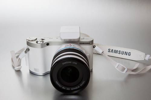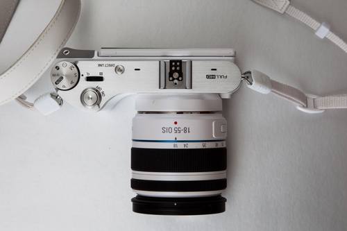 拿到三星新出的NX300相机,白色版本。银灰色的合金机身,配上白色的皮质蒙皮,时尚又高雅。一般来说,其它相机需要皮套的话得另配一个皮套,因此会加大整体体积,影响便携性。看来,三星的这个设计是瞄准了当今的年轻时尚人群。