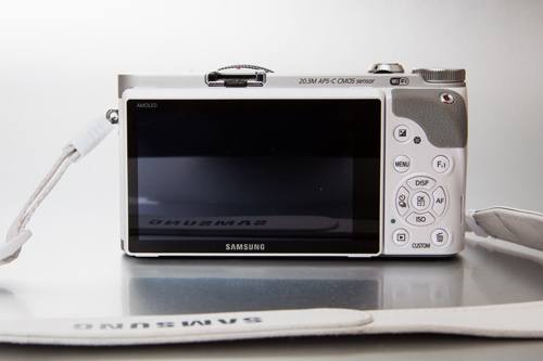 NX300采用了弧形的手柄设计,握持感非常好。我尝试只用单手操作相机,感觉手感很好,不会有滑脱的感觉。而且,弧形的线条看起来很性感,给整体外观增色不少。