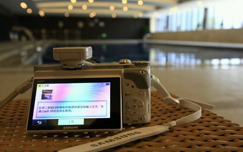 NX300支持NFC近场通讯,WI-FI。可以直接发微博,人人,POCO,skydrive,邮件等等。我猜测,三星手机部门肯定参与了该相机的研发工作。因为,很多手机上的功能都被移植到了该相机里。