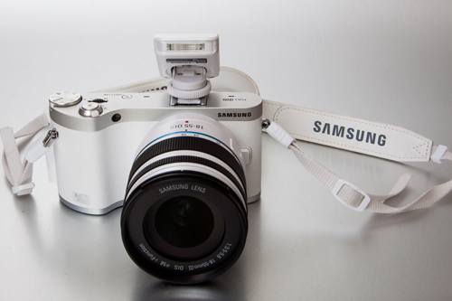 NX300带热靴。附送一个指数为8的小闪光灯。该闪光灯灯头往上翘的时候才能闪光。这个设计很巧妙,保证了闪光灯发出的光线不会被镜头挡住。