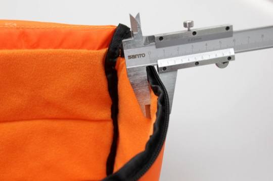 内胆的大隔板厚度和内胆外壁厚度大致相当,均达到了5mm,而活动式的小隔板厚度也有大约4mm厚,而且隔板内部填充了珍珠棉,进一步保证了摄影包的减震性能。