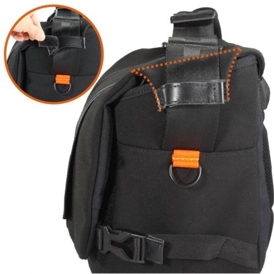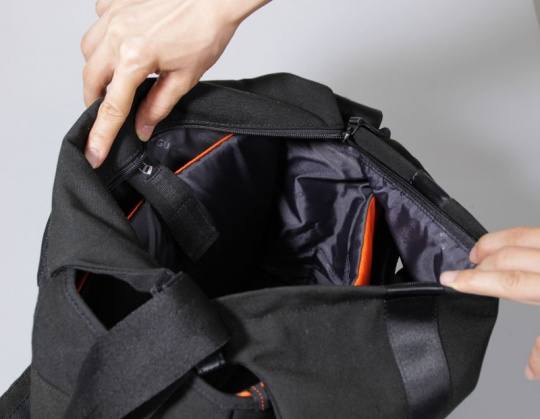 VOJO 28的快捷取镜开口设在摄影包的顶部,因此在日常使用中取物是非常方便的。而目前市面上大多数这类型的单肩摄影包,在取镜时都要先掀开面盖。有了这项设计,据我们实际测试,取机最快只需要6秒就能够完成。