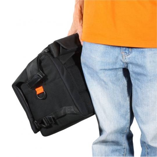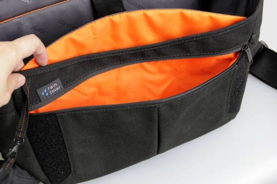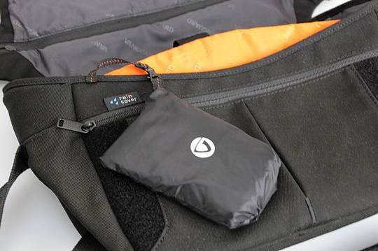 VOJO 28的防雨罩采用了一体化设计,直接通过一条尼龙带固定在摄影包上,可以有效防止防雨罩的遗失,再不需要使用时,只需要把防雨罩折叠回防雨罩的外包中即可方便保存。