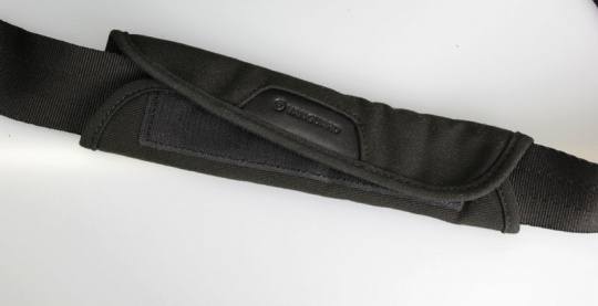 背包的后面则带有一个把摄影包固定在拉杆箱上的背带,这条背带还能够成为一个拉手,方便携带。而且背部与身体紧贴的部分还采用了3D网状材料,进一步提高了透气性能。