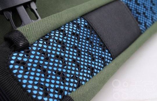 这款包的背带也很有特点,它比较的宽大,有效增加肩部的受力面积,当器材较重时,可以分散肩部的压力。这款包的肩垫还使用高透气的面料,在夏日使用时,这个透气材料能快速散发热气,让用户保持清爽状态。