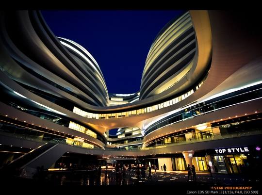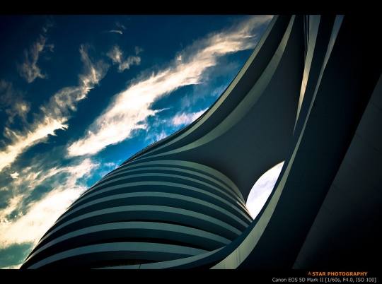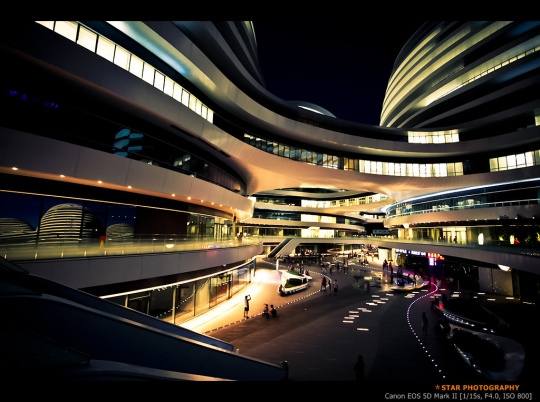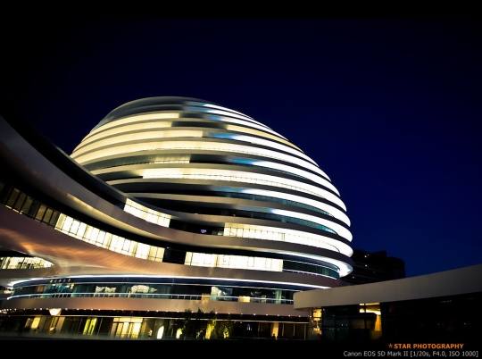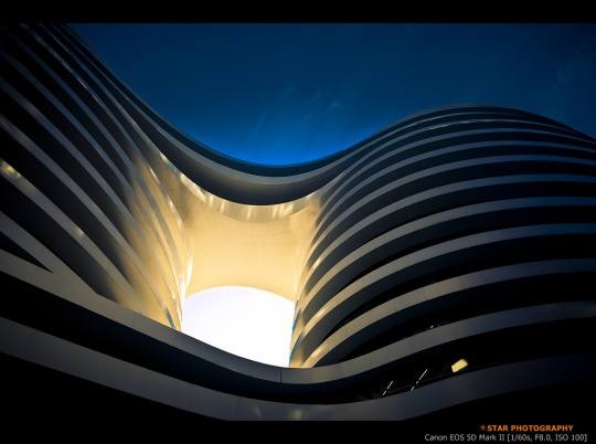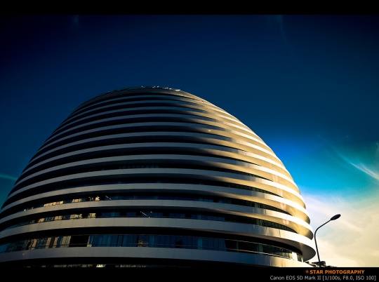 北京7月2日那天的空气质量极佳,遂临时请假背上相机到著名的银河SOHO进行拍摄。