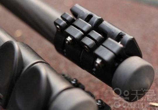 前面的我们已经提到这款三脚架套装使用了大量的轻量化材料,而三脚架部分更采用了高级碳纤维的设计。而脚架的各个细节部分也充分体现了百诺对产品质量的严格要求。