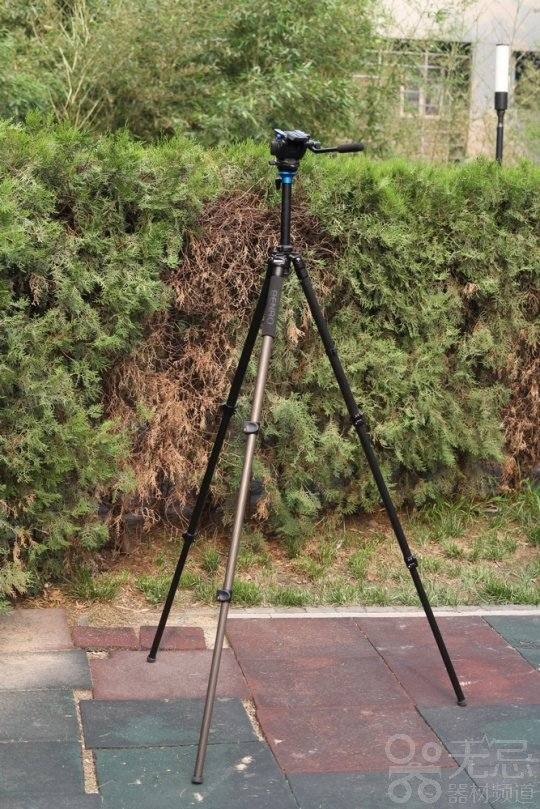 从图中可以看到这套设备装到三脚架上比较协调。没有出现头重脚轻的那种情况。笔者用手晃了晃脚架比较稳定。