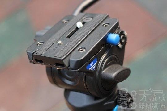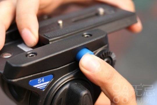 这款三脚架套装使用起来也非常的方便。采用了大量的旋钮来控制云台的水平移动和俯仰上下移动。笔者这里需要说明的就是关于快装板的使用方法。百诺在快装板这里设置了一个小小的机关 。也是一个保护装置。就是当你松开快装板锁定钮以后,快装板还是不能离开从底座上分离出去,还必须要通过按下蓝色的保险钮才能完全从底座上卸下来。这个多重保护装置可以有效的预防器材滑落的危险。