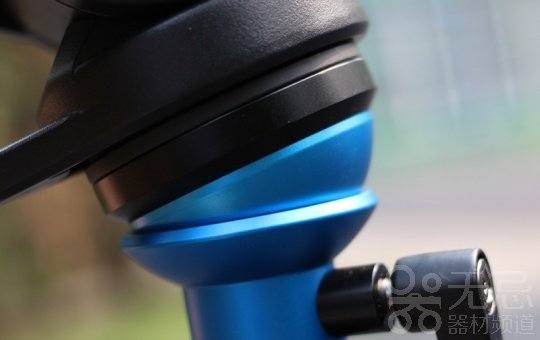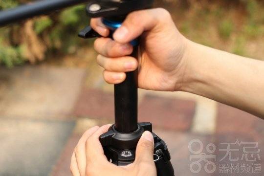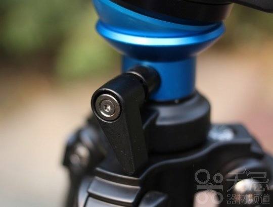 还有一个关键的开关就是云台与脚架结合的半球形部分,这里还设置了一个开关,可以让云台整体以圆形为基础进行360度的旋转。不过这里笔者需要提醒大家的是,开合这个开关的时候一定要用手托住云台主体 ,因为假如云台上正好负重器材的时候,很容易出现云台垂头的情况。