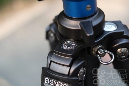笔者注意到在中轴开合旋钮的下面百诺还设计了一个小的指南针。虽然很小,但说明厂商还是充分考虑到用户的实际使用需求的。在户外拍摄还是挺实用的。