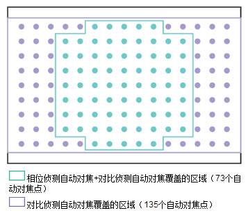 尼康 1的对焦点多达135个,其中包括73个相位侦测自动对焦点。