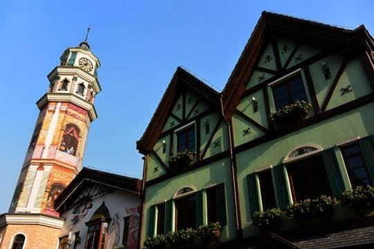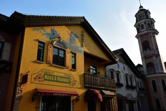 的CX画幅传感器的面积介于单反的DX画幅和高级小型数码相机的1/1.7之间,所以它的画质比小型数码相机要更好,而接近于DX单反。我们来到了北京某商业区,这里有一个仿欧式小镇建筑群,就让我们用此地拍摄的样片体验一下的表现吧!