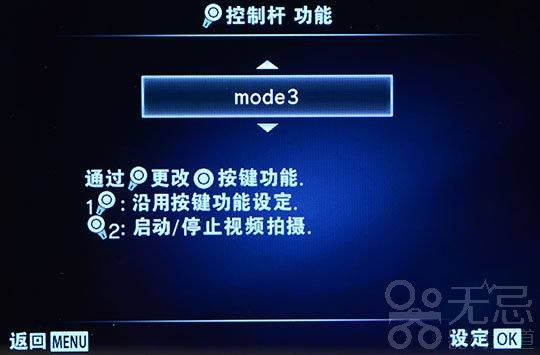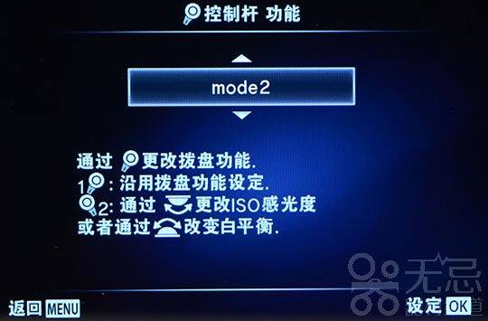 我们可以找到“B.按钮/拨盘/控制杆”自定义下,控制杆功能默认为mode1,切换至2前拨盘控制ISO后拨盘控制白平衡;mode2则与mode1相反,切换至2前拨盘控制白平衡后拨盘控制感光度;mode3时,切换至2,控制杆更改视频录制按钮功能,启动/停止视频拍摄;mode4则是控制杆改变AF模式,1/2设置AF模式。