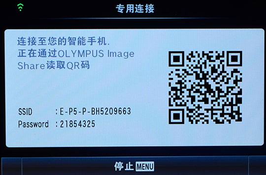 相比其他品牌手动连接相机,需要输入各种ID、密码,奥林巴斯E-P5只需轻触拍摄界面上的Wi-Fi图标,通过智能手机OI.Share应用程序读取相机屏幕上的Wi-Fi连接专用二维码,就可以迅速地进行连接。当然这种方法在光线不好的情况下会因为智能手机摄像头素质较差无法扫描明亮白底的二维码,这时用户只能用智能手机搜索相机的Wi-Fi热点,手动连接需要输入相机密码进行连接。由于智能设备此时只能连接相机,其他Wi-Fi便断开。
