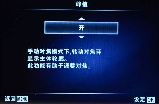 当使用老镜头进行手动对焦拍摄时,峰值对焦功能让确认合焦更容易。编辑注意到这款相机关于峰值有两处可设置,在手动辅助对焦选项中有放大和峰值两个选项,“峰值”指手动对焦模式下,转动对焦环显示主题轮廓,此功能有助于调整对焦。不过该功能似乎是对应奥林巴斯自动对焦镜头切换在手动对焦时使用。