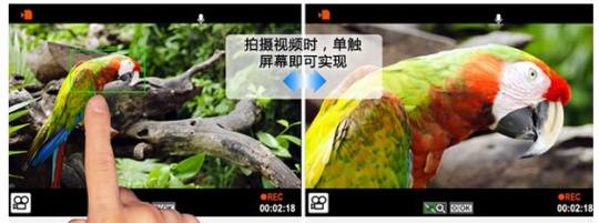 在拍摄视频的时候,可通过视频一键放大功能,轻触屏幕就能放大图像中的一部分,而原始图像和放大图像在切换过程中没有任何画质损失。该功能让视频拍摄更加有趣。拍摄短片时随时切换拍摄特写画面。