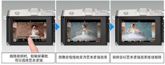 同样,在拍摄视频时,只需轻触屏幕,就能选择艺术滤镜,图像会平滑地进行艺术滤镜效果切换,让拍摄更具艺术效果的视频。