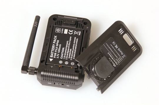 发射端的供电和控制端一样,采用了1200mAh 3.7V的NP60可充电锂电池。电池盖的打开方式也较控制端方便。