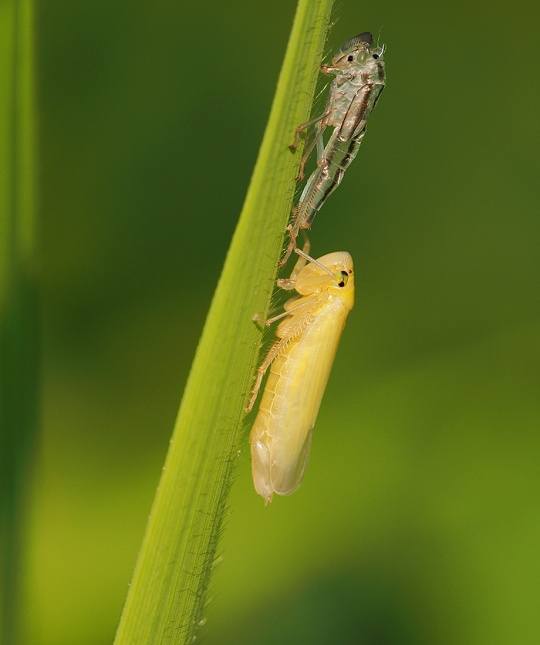 叶蝉脱皮,没有时间等它变绿了。用近摄镜拍