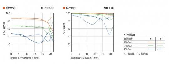 从图中可以看出这支镜头F1.4全开情况下稍显偏软,锐度尚可,光圈收到F2.0-F2.8锐度有一定提升,F4-F11则是这支镜头最佳范围。当然光圈在F16之后锐度开始下降,在最小光圈F22时受到衍射影像,锐度较差。对于一款标准镜头来说,这样的表现已经非常不错了。