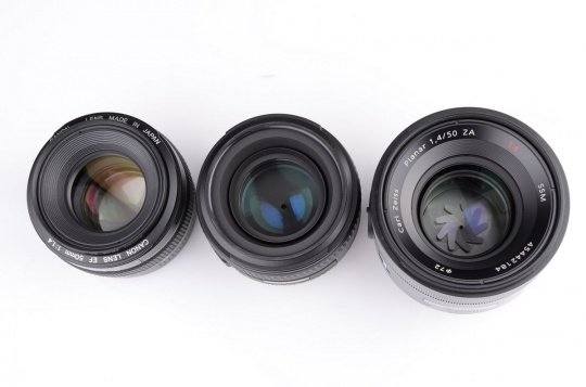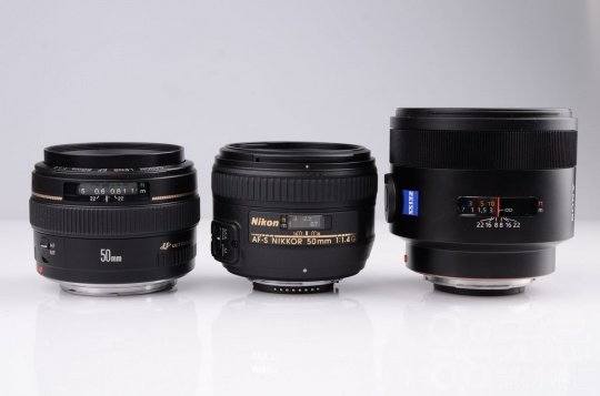 Planar T* 50mm F1.4 ZA SSM与佳能、尼康50mm F1.4镜头外观对比