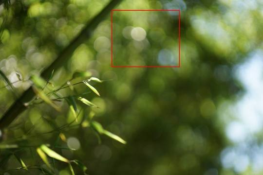全开F1.4光圈下,虚化使得树叶杂乱缝隙形成圆形光斑,从图上截图来看这款镜头的虚化能力不错,非常柔和。焦外光斑呈圆形(椭圆),该镜头采用9叶片圆形光圈在散焦效果上还是起到一定的帮助。