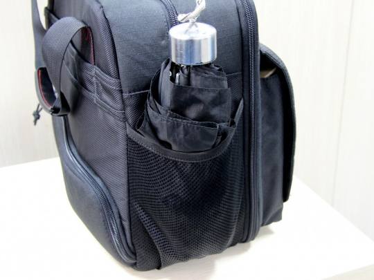 Box 30两侧各提供了一个尼龙网兜,可以用于存放雨伞、水壶等物品。网兜开口处用可以伸缩橡筋作束缚,即使把摄影包整体倒转180度也不会把甩出包外。