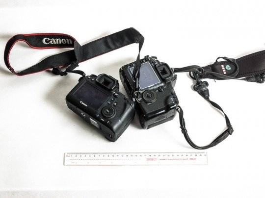 和Canon EOS 5D Mark II对比,我拍摄了一些对比照片,可以看出,Canon EOS 6D取消了左侧的竖拍按钮之后,更加窄、更加薄。