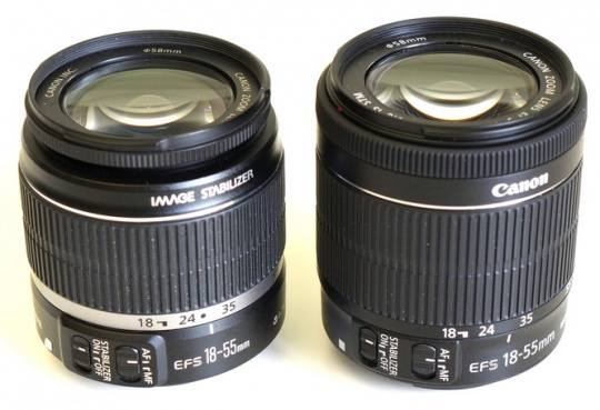 与数码单反相机、同时推出的还有一支新镜头 ,采用内部对焦方式,最近对焦距离为0.25米,搭载了IS影像稳定器可获得最大相当于提高约4级快门速度的手抖动补偿效果,具备手动对焦环。据官方介绍,对比之前的旧款套机镜头,新镜头采用了全新的光学系统,可获得更好的光学性能。下图为新旧两款镜头对比: