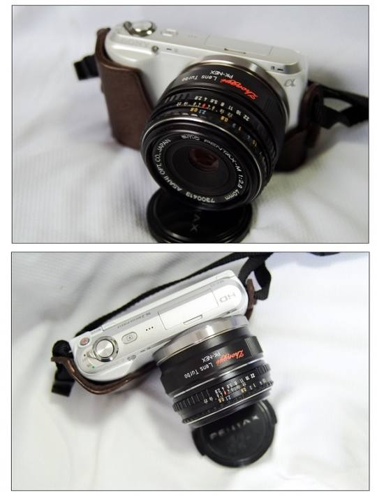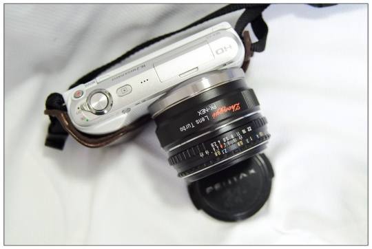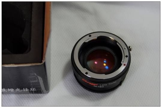 今天上班在完全没有先兆的情况下,收到中一光学发来的减焦增光环。由于研发有先后,这次拿到的是PK-NEX的减焦环。包装盒一如既往的简单,不过盒内的预成型泡沫倒是能保证减焦环的稳定放置。拿出减焦环一看,做工比较精致。手边只有宾得饼干M40/f2.8和NEX C3,拧上去试试,卡口精度很好。由于在上班而且外面倾盆大雨,只能在办公室比划几下,感觉减焦效果明显,用普通PK-NEX接环转接比较,在场景、照度和光圈快门不变的情况下,ISO从600降低到400,貌似有增光作用。粗粗一看画质没有明显变化,能提高锐度的说法有待测试证明,起码感觉上没有画质下降。
