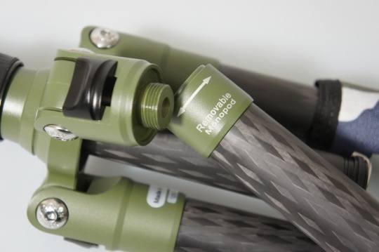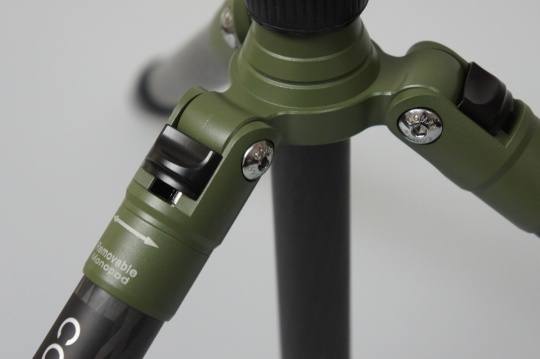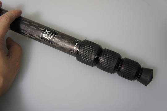 除了上述功能外,240套装还能够直接把其中一条脚管拆卸,瞬间变成独脚架。操作方式非常简单直接,可以拆卸脚管的部分也有明确的指引。由于240套装的脚管采用碳纤维制造,因此这个单脚架非常轻便坚固。值得一提的是,240套装采用的碳素纤维采用了一种被称为8X多层立体编织技术,增加了碳纤维丝的多方向性,在不增加重量的情况下,碳纤维管的纵向承重力增加了1.2倍。
