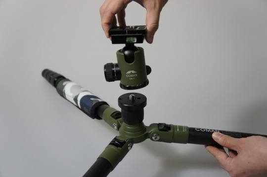相似的步骤还能够实现云台的倒置,在某些低角度的拍摄中用这种方法操作起来会比把脚架张到最开来得便捷。当然,这时候对脚架稳固性的要求则更为强烈(这种需求其实更多是心理上的),不过如果选择倒置云台的话,云台快装板和快装夹连接处将承受到很大的压力。敢于设计这项功能的厂家通常都对自己的产品抱有绝对的信心。