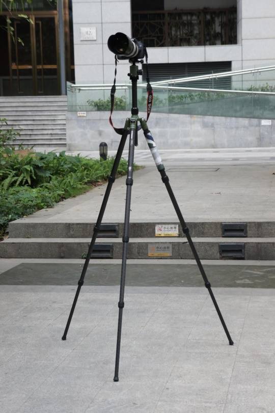 最后接上云台,就能够实现最低角度的拍摄。在最低角度状态下,整个240套装的高度大概为250mm。