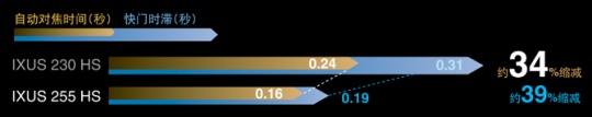 IXUS 255 HS虽然是一款家用便携相机,但在速度上佳能下了一番功夫。相机在最大广角端拍摄时的自动对焦时间仅约为0.16秒,快门时滞仅约为0.19秒,相比IXUS 230 HS,时间分别缩短了约34%和约39%。