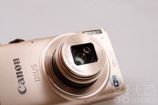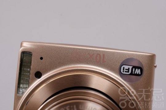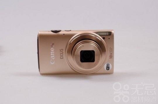IXUS 255 HS正面有“10X ZOOM”和“WiFi”标识,表明这款相机。这款相机镜头为4.3-43.0mm F3.0-6.9(等效视角24-240mm),广角端微距能达到1cm。