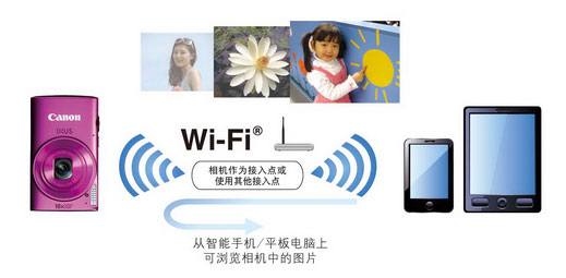 IXUS 255 HS的照片或短片可通过4种Wi-Fi方式传输:支持Wi-Fi的相机、智能手机/平板电脑、计算机以及打印机。通过无线网络应用,可以丰富分享影像的方式。