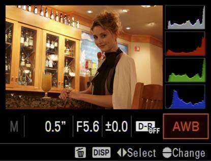 相信很多人在拍摄过程中都有拍摄、回放、修整设置,再拍摄、再回放、再调整的经历。α900第一次推出的另一先进功能是“智能预览”。在菜单里将预览功能设置为智能预览,此时,按下这个按钮,相机就会拍摄一张照片在LCD上显示。新颖的地方在于所拍照片显示后,我们可以通过控制拨轮更改参数,相机会通过软件计算,将不同参数设置下的画面效果直观的在图像上体现出来。