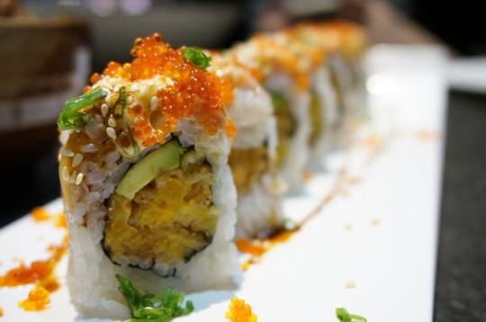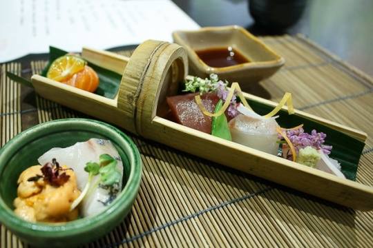拍摄美食大概有几种,第一种就是一些饭店中制作比较精美的食物。例如上面的图片,竹筒的器皿搭配上竹席和古香古色的小碗,都构成了一套独特的组合。通过合理位置的摆放,让它们看起来较为舒适,对焦点选择主要食物,通过光圈的虚化效果让配菜和酱料成为辅助的元素。这样的表现,让这道菜拍摄出“完整”的关系,观看照片的人可以感受菜肴的“口味”。而如果单独去拍摄一个三文鱼,照片则会失去了勾人口水的目的。