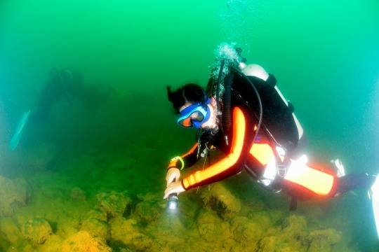 拿到卡的第二天,刚好有朋友要去云南抚仙湖的水下古城潜水,我答应帮他们拍一组水下照片,理所当然地就用这张卡进行拍摄了。