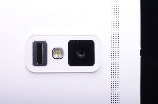 机身背部,Xplay3S采用上下双扬声器,而Xshot仅有下方配有扬声器。据官方称这384个钻石刀雕刻的微孔出音孔,半径仅有0.2MM。除了扬声器,两者最大的不同是在摄像头区域,Xshot搭载了双色温双LED闪光灯,也就是高亮LED白灯+暖色灯的组合。实时检测环境的亮度和色温,分别调整两颗闪光灯的亮度,动态补偿了红色和绿色光谱。理论上可获得接近于自然光一样的补光,拍照更加真实。