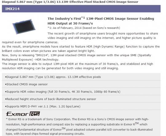 索尼官网对IMX214的介绍