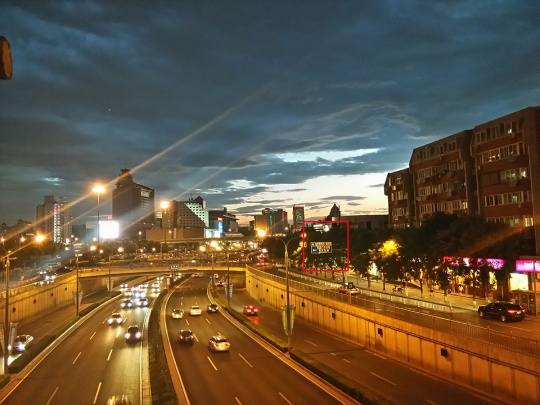 从实拍来看,该模式下噪点确实要比普通模式好,当然细节也更为干净,这款手机能够保留一些较大的细节,整体来看对于一款手机的夜景性能,这样的表现还是比较好的。当然手机拍摄,对于街上的灯光控制并不好,形成斜线高光,这也是大多数手机的通病。