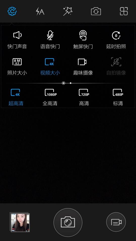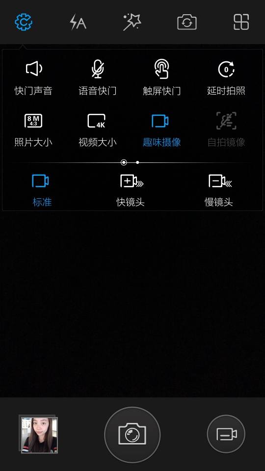 Xshot由于IMX214助力,支持拍摄4K(3840x2160)视频,与拍照一样摄像也有专业模式,该模式下支持AE锁定(曝光锁定,方便高光比场景保证主体曝光)和手动对焦。此外趣味拍摄则支持快慢镜头。