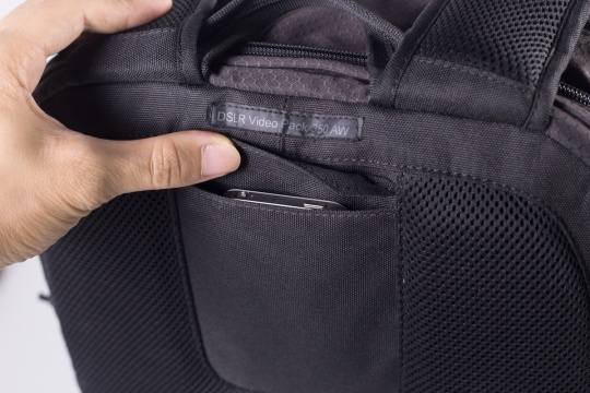 摄影是一门学问,空间是一门科学,一个可以边走边听歌的随身听收纳隔层设计让笔者觉得很靠谱,当背着器材步行时,听着歌会轻松许多。