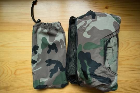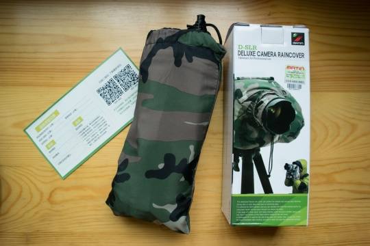 我这次拿到的是马田(M-7099)迷彩装,给我的第一印象就是防雨罩收纳起来非常小,很便携,可以随意塞在摄影包里或者挂在包上。