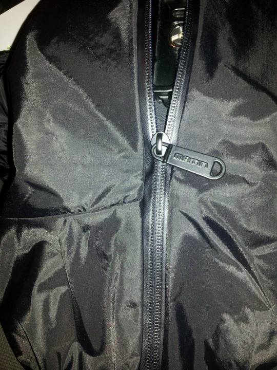 拉链头是金属的,很厚很扎实,上面还有马田的logo。对于这个金属拉链头我有点担心,如果不小心和相机磨蹭会不会磨花相机?如果换成尼龙的会不会更安全也更轻便?事实上试用下来并没有发生两者磨蹭的情况,可能是我多虑了。