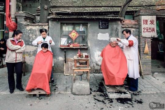 在穿行于宣武区粉房琉璃街的十年间,我数次经过这个街头理发点。每次都有不同的客人在这里剪着各色的发型,聊着各自的话题,欢笑或是叹息。而摊主夫妇就始终沉默剪发。在2012年春天,这条街道已经拆毁了一半的时候,我偶然发现他们依然坚守在原地,一如既往地默默为老街坊们提供物美价廉的剪发。