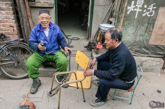 三转桥胡同的焊活儿摊,摊主老先生正在为他的客人维修过去中小学里常见的锯末板课椅。随着分工的细化,类似的日用家居维修越来越多地由厂商进行一条龙服务,哪里磕了碰了对于现代社区里的人来说,不过是一通电话的事,随着胡同片区的陆续拆迁,这类服务于一定区域内的传统社区的专业摊点已经日渐稀少。
