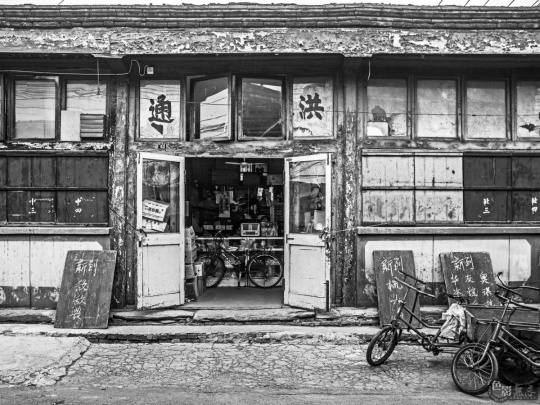 洪通杂货店,是一家创世与民国时期的老牌杂货店,位于宣武琉璃厂和前门大栅栏附近的延寿街上,这家店至今还保存着几十年前的旧风貌。无论是卖的东西还是店面样式。特别是传统零售店“开张下板,打烊上板”的工作流程,如今看来已是如传统商业模式活化石一般的珍贵。图片中可以清楚地在窗板上看到正楷书写的,标示木板摆放位置的“中三、中四、北三、北四”等字样以及民国时期留存下来的手写“洪通”招牌。